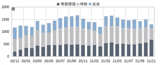 A :國際修船市場整體較為平穩(wěn)。隨著全球疫情得到一定程度的控制,航運市場一路高歌,全球修船市場整體延續(xù)平穩(wěn)態(tài)勢。根據(jù)克拉克森數(shù)據(jù),1-11月,全球共修理16333艘,同比增加1.4%。常規(guī)修理和特檢塢修時間較短,對船東排期影響較小,訂單量均有所增長,常規(guī)修理和特檢訂單分別為5714艘和6831艘,同比分別增長15.4%和1.5%。航運市場火爆,船隊運力緊張,運價持續(xù)高位,船東主動改裝意愿不強,加上脫硫塔訂單量銳減等因素,改裝訂單有所減少,共改裝3788艘,同比減少14.5%。壓載水處理系統(tǒng)改裝量保持穩(wěn)定,共加裝3379艘,占改裝總量的89.2%,同比增加4.7%。脫硫塔加裝熱潮明顯消退,僅加裝237艘,占改裝總量的6.3%,同比大幅下降76.6%