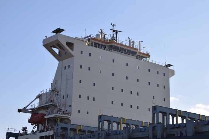 該輪11月12日靠泊我司長涂基地,主要工程是混合式脫硫改裝項(xiàng)目,即將原有煙囪排氣系統(tǒng)根據(jù)最新環(huán)保排放標(biāo)準(zhǔn)新裝煙氣洗滌脫硫塔以及塔房結(jié)構(gòu)、混合式脫硫泵及管路系統(tǒng)、氫氧化鎂堿液儲存及加注系統(tǒng)、廢水處理系統(tǒng)以及脫硫監(jiān)控、檢測設(shè)備及系統(tǒng)和電氣系統(tǒng),另有阿伐拉伐壓載水系統(tǒng)改裝、岸電系統(tǒng)改裝、駕駛臺設(shè)備升級、艙蓋修理等其他特檢工程。