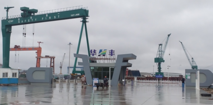 該基地總占地面積264400㎡,生產(chǎn)場地布局合理,設(shè)施設(shè)備齊全。擁有2個(gè)船塢:8萬噸級(jí)(連體)船塢1座(長560m、寬40m);30萬噸級(jí)船塢1座(長360m、寬68m);2個(gè)碼頭5個(gè)泊位:其中,30萬噸級(jí)舾裝碼頭1座(長680m、寬31m),前沿為30萬噸級(jí)泊位2個(gè),后沿為5萬噸級(jí)、8萬噸級(jí)各1個(gè); 及6萬噸級(jí)舾裝碼頭1座(長140m、寬19m)。