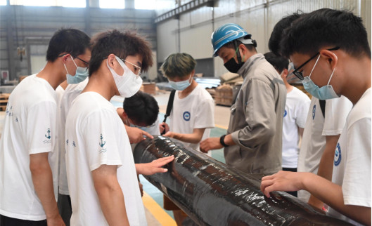 隨后,調(diào)研團(tuán)一行現(xiàn)場參觀了公司的輪機(jī)、金工等生產(chǎn)車間。廠區(qū)設(shè)備設(shè)施完善,可實(shí)現(xiàn)各類船舶配件的維修、加工、調(diào)試,具備承接各類船舶、各種修理和改裝工程的能力。特別值得一提的是,為解決船舶加裝脫硫塔對玻璃管道的需求,公司2019年投資2000余萬元成立了舟山市華速船舶配件有限公司,專業(yè)從事玻璃鋼管道及配件的研發(fā)、設(shè)計(jì)、生產(chǎn)、銷售及安裝。生產(chǎn)車間占地5000平方米,建有一條管道生產(chǎn)線和一條管件生產(chǎn)線,擁有各類檢測及加工設(shè)備,玻璃鋼管道、管件年生產(chǎn)能力分別達(dá)600噸/年和400噸/年。