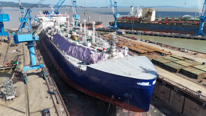 “瑪格麗”輪長299米,寬50米,配備3臺(tái)ABB全回轉(zhuǎn)電推,由6臺(tái)瓦錫蘭三燃料12缸V型發(fā)電機(jī)組提供動(dòng)力,4個(gè)液貨艙為GTT.No.96型薄膜艙,艙壁殷瓦鋼厚度僅為0.7毫米,液貨艙總?cè)萘繛?/span>17.4萬立方米,該輪是全球首制冰區(qū)電推型LNG船,也是進(jìn)入舟山地區(qū)船廠修理的主尺度最大最新型的冰區(qū)電推型LNG船。