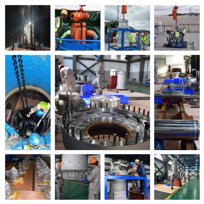 此次修理主要涉及塢內(nèi)冰區(qū)漆涂裝,推進(jìn)系統(tǒng)、絕緣層安全閥及低溫液貨維護(hù)系統(tǒng)等核心設(shè)備檢修,主要包括主推進(jìn)器、發(fā)電機(jī)檢修,4個(gè)液貨艙開艙檢查,貨艙液貨泵、燃?xì)獗貌饳z,低溫閥及貨物壓縮機(jī)檢修等。特別是液貨泵的離船檢、修、拆、換,作為精密設(shè)備,全程進(jìn)行了嚴(yán)格保護(hù)。